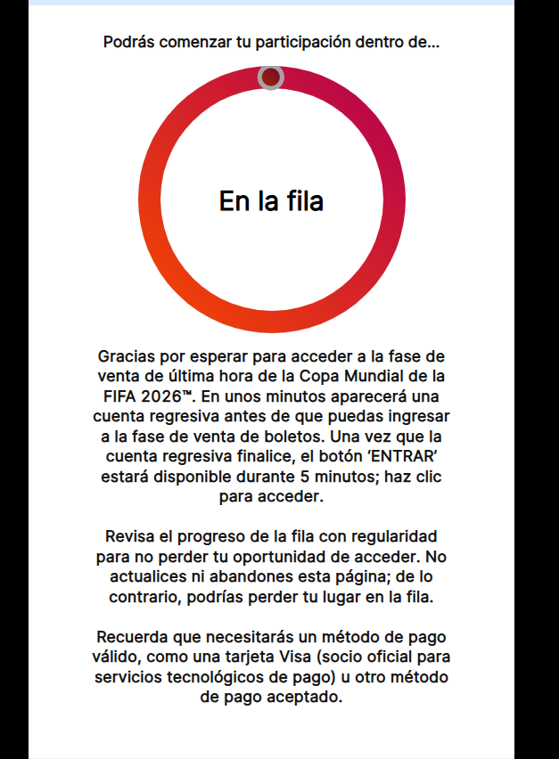 La FIFA recomienda utilizar únicamente su portal oficial para evitar fraudes o compras inválidas y recuerda que todas las ventas de entradas son definitivas, y los términos y condiciones aplicables se pueden consultar en FIFA.com/tickets.