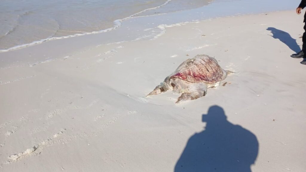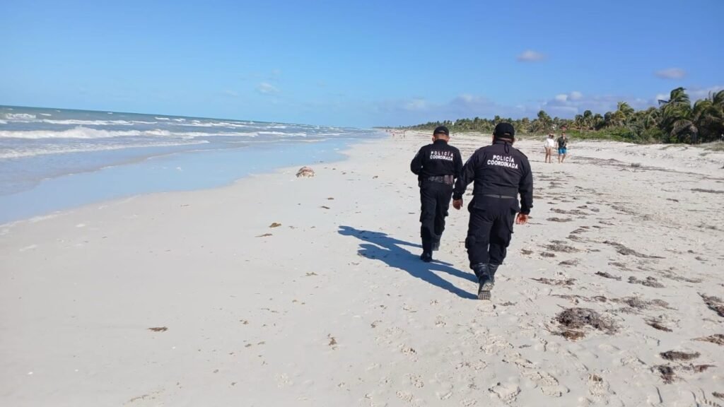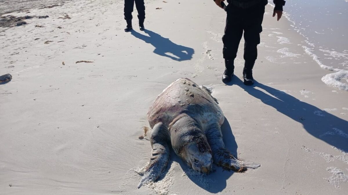 EL CUYO, Yuc, a 20 de marzo de 2026.- Elementos de Seguridad Pública localizaron, en playas de El Cuyo, una tortuga marina sin vida y en avanzado estado de descomposición, durante un recorrido de vigilancia realizado en la zona costera.
