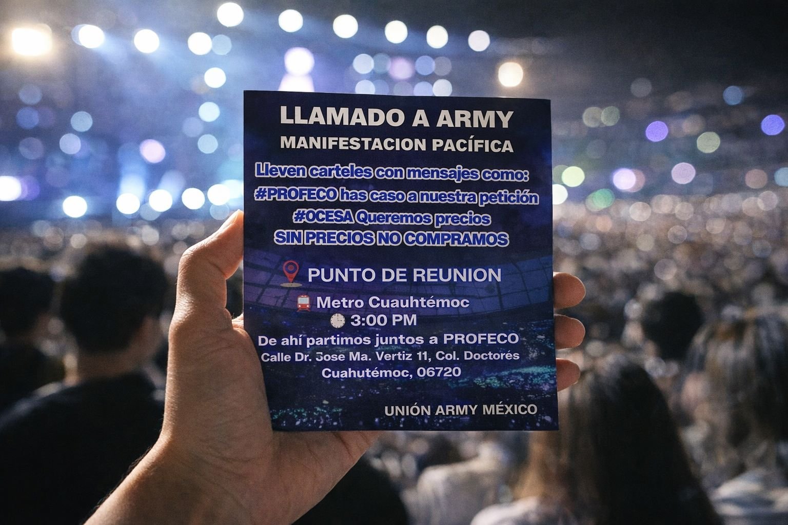 CIUDAD DE MÉXICO, a 21 de enero de 2026.– ¿Eres fan de BTS y te preocupa no saber cuánto vas a pagar realmente por tus boletos? Esa inquietud es la que hoy mueve a integrantes de ARMY México, quienes convocaron a una manifestación pacífica en la Ciudad de México para exigir precios claros, información completa y procesos transparentes antes de cualquier preventa.