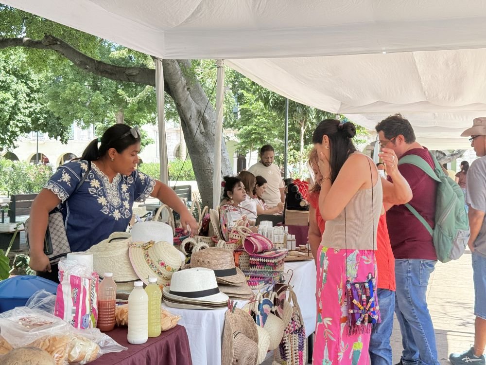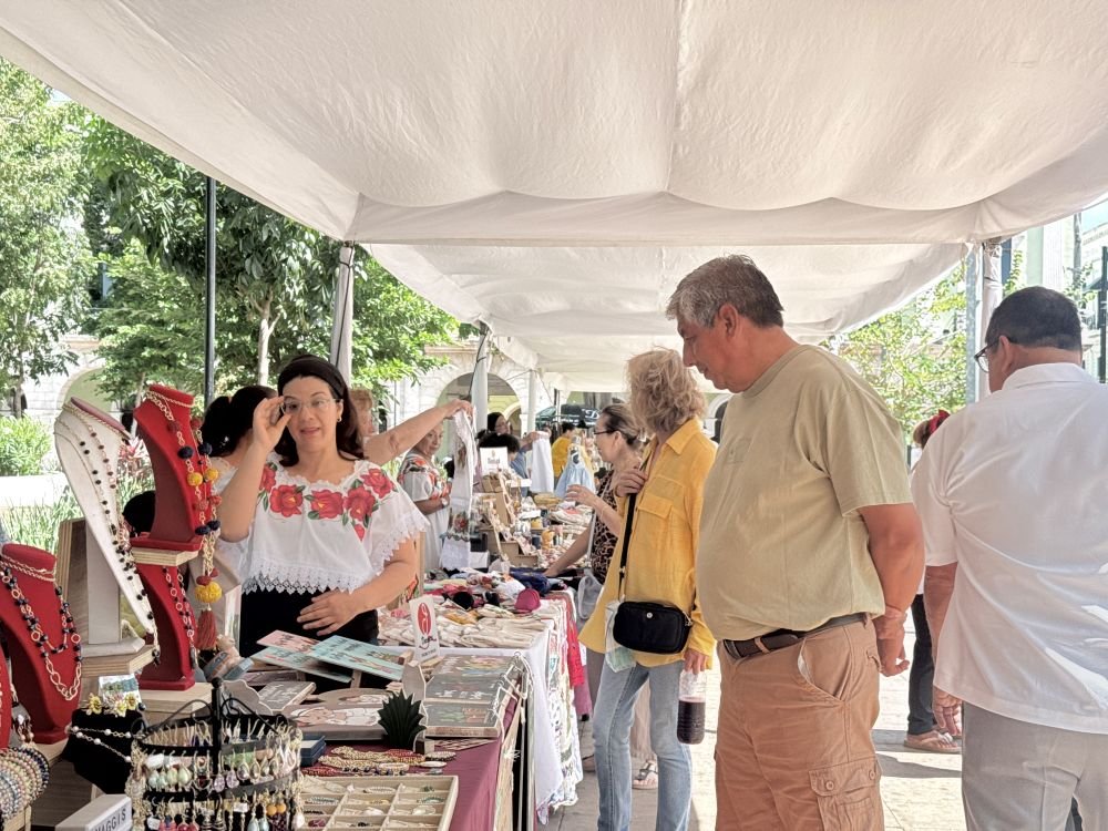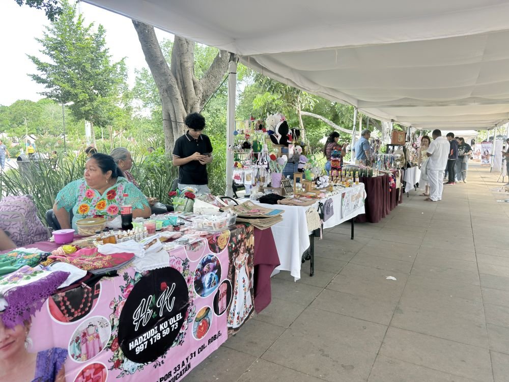 MÉRIDA, Yuc, a 9 de abril de 2026.- Más de 30 artesanas del interior del estado participaron en la Feria Artesanal “Por los Derechos de las Mujeres”, instalada en la Plaza Grande de Mérida, donde concluyeron una jornada positiva de ventas y exhibición de productos hechos a mano. La actividad, impulsada por la Secretaría de las Mujeres (Semujeres), reunió artículos como textiles, bolsas, velas, joyería y productos naturales, en un esfuerzo por fomentar el comercio justo.