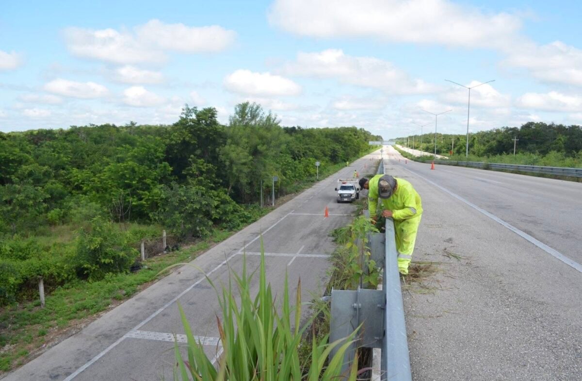 En el caso del Distribuidor Vial Teya, ubicado sobre la carretera Mérida–Cancún, las labores se enfocaron en una de las conexiones más transitadas del estado, utilizada diariamente por transporte de carga, autobuses y automovilistas particulares.