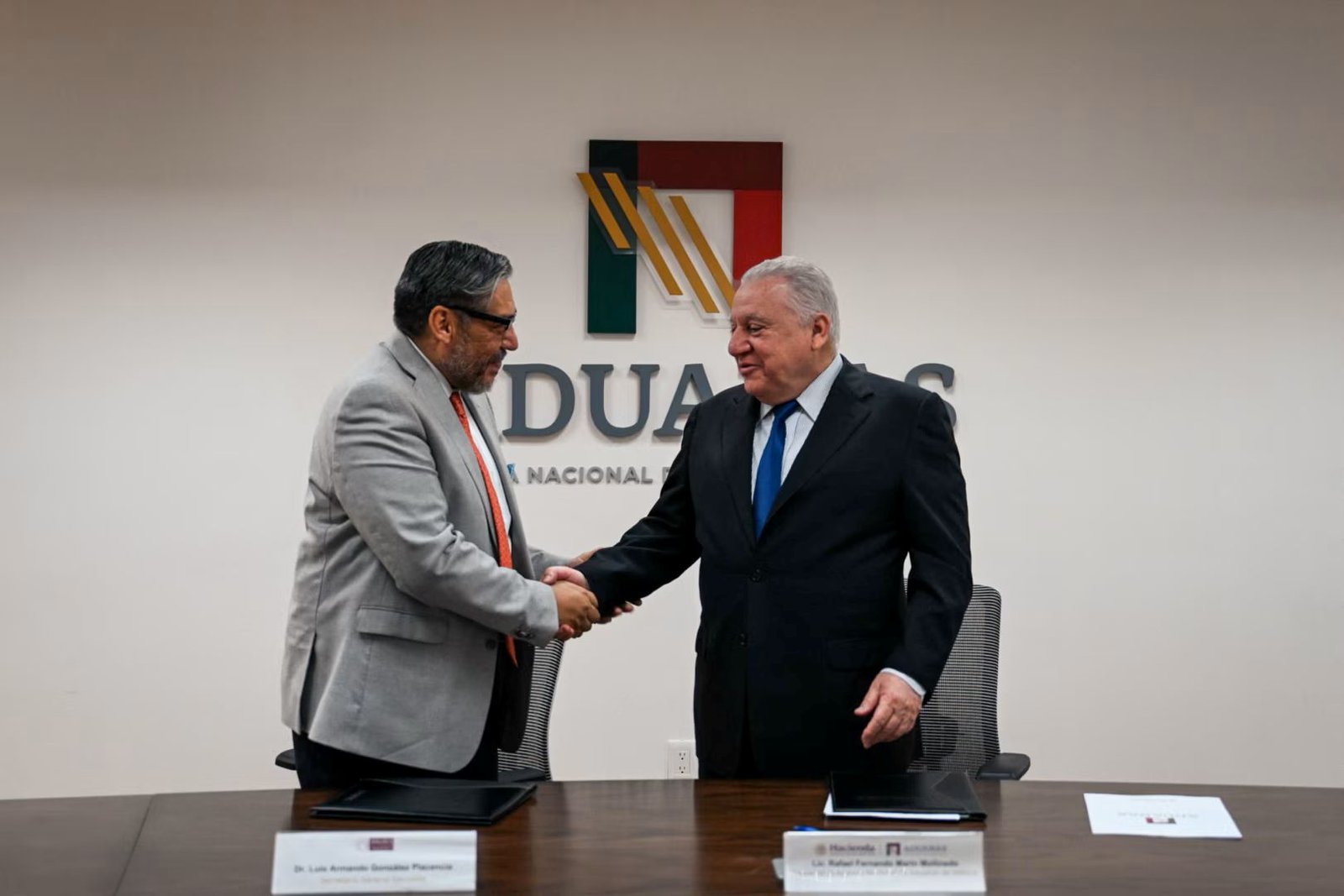 El convenio fue suscrito por el titular de la Agencia Nacional de Aduanas de México, Rafael Fernando Marín Mollinedo, y el secretario general ejecutivo de la asociación, Luis Armando González Placencia, como parte de una estrategia orientada a reforzar las capacidades del Estado mexicano a través de la preparación de profesionistas en áreas clave del comercio exterior.