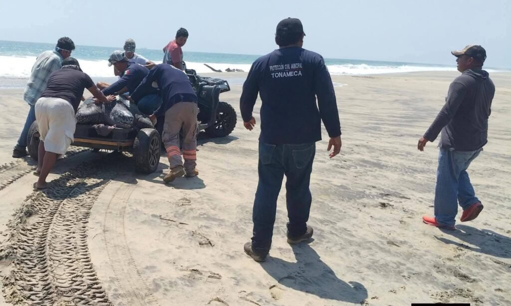 SANTA MARÍA TONAMECA, Oax., a 17 de marzo de 2026.- Un fenómeno de mar de fondo combinado con marea alta provocó una escena inusual en la costa del Pacífico mexicano: una tortuga laúd de aproximadamente 300 kilos fue arrastrada dos kilómetros tierra adentro en el municipio de Santa María Tonameca, lo que obligó a desplegar un operativo de rescate para salvarla.